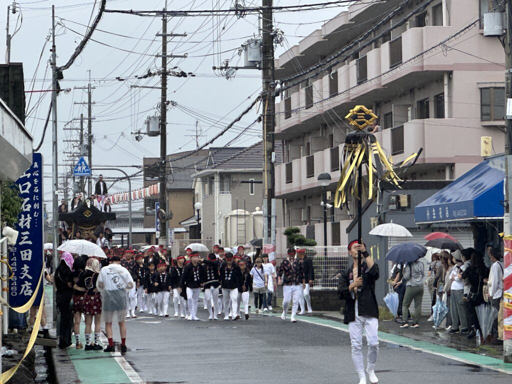 当日は、15時ごろまでは土砂降りの雨に見舞われ、装束もびしょ濡れになるほどの天候でしたが、次第に雨も上がり、夕方には秋らしい爽やかな空が広がっていきました。来る11日・12日は本番です。体調管理に気をつけ、無事故・無怪我で、心から楽しめる祭りにしたいと思います。