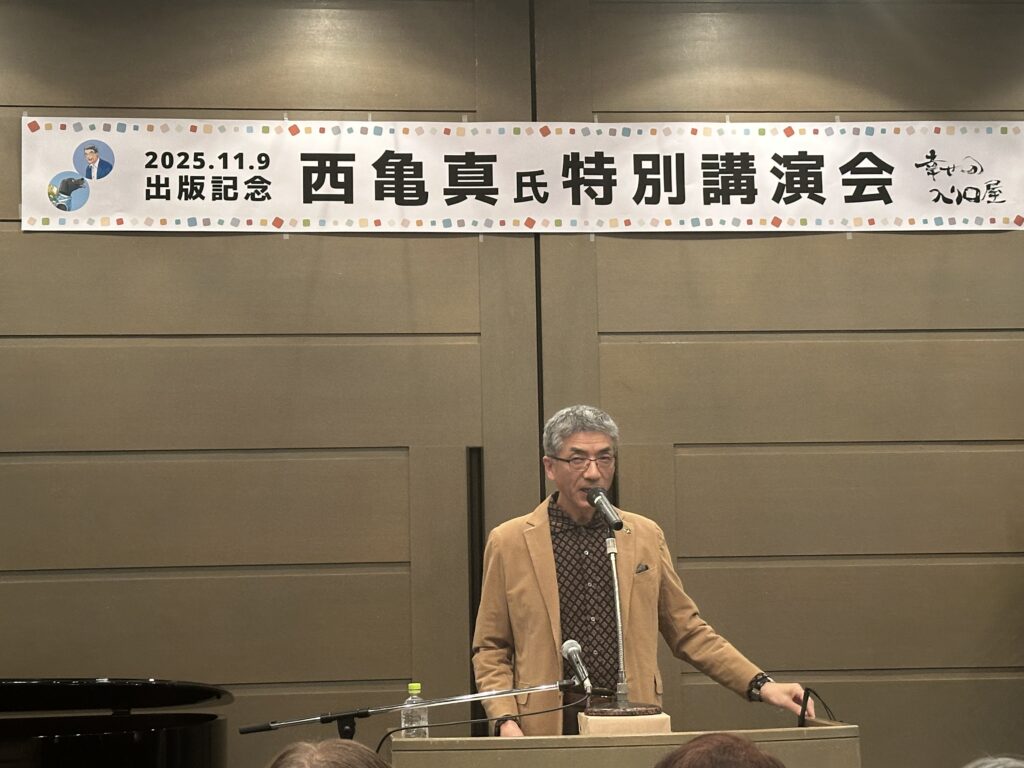 昨日は、盲目のセラピストでありますカメちゃんこと西亀真さんの講演会に行ってまいりました。